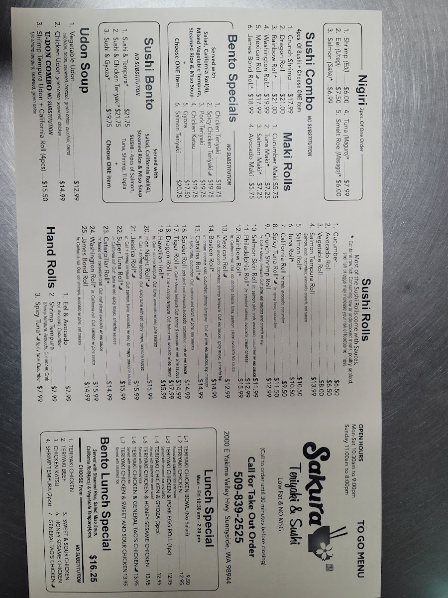 The menu at Sakura Teriyaki & Sushi offers a balanced blend of comforting Japanese and Asian-inspired dishes, designed for casual dining with a familiar, approachable touch. Whether you're stopping by for a quick lunch or settling in for a relaxed dinner, the selections range from fresh sushi rolls to hearty teriyaki and bento plates.
